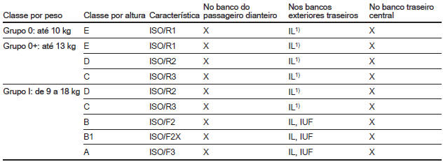 IL = Próprio para sistemas de segurança especiais ISOFIX das categorias veículo específico, restrito ou "semi-universal". O sistema de segurança ISOFIX deve ser aprovado para o tipo de veículo específico.