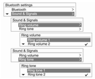 Para configurar o tom de toque e o respectivo volume utilizado pela função Bluetooth, utilizar o botão MENU com o mostrador TUNE para seleccionar Som e Sinal e em seguida configurar os itens pretendidos através do botão MENU com o mostrador TUNE.