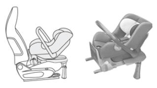 É instalada "de costas para a estrada" através de uma base ISOFIX que é fixa nas argolas A. A base inclui um suporte, regulável em altura, que assenta na superfície inferior do veículo. Esta cadeira pode ser fixa através de um cinto de segurança. Neste caso, apenas a estrutura é utilizada e fixa ao banco do veículo através do cinto de segurança de três pontos. Neste caso, apenas a estrutura é utilizada e fixa ao banco do veículo através do cinto de segurança de três pontos. |