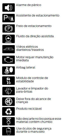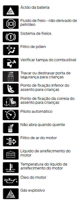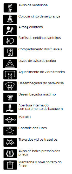 Ford Ka: Glossário de sÃmbolosEstes são alguns dos sÃmbolos que você pode ver em seu veÃculo.