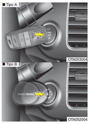 - Se a bateria estiver fraca ou se o dispositivo smart key não estiver a funcionar correctamente, pode ligar o motor pressionando o botão para LIGAR/DESLIGAR O MOTOR (arranque/paragem do motor) directamente com o dispositivo smart key.