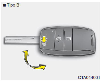 Para desdobrar a chave, carregue no botão de libertação. A chave desdobrase automaticamente.