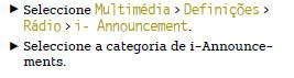 Apresentar informações sobre determinadas categorias (i-Announcement, apenas rádio digital)