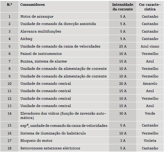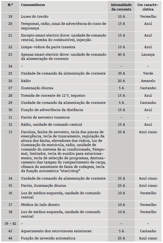 Smart Fortwo: Esquemas de ocupação dos fusíveis