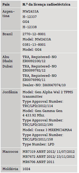 Homologações para sistemas emissores das monitorizações da pressão do ar nos pneus