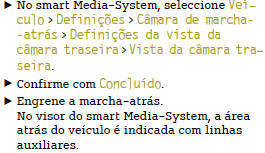 Smart Fortwo: Ligar a câmara de marcha-atrásPara que seja possível utilizar a câmara de marcha-atrás, a ignição tem de estar ligada.