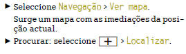 Com a função "ver mapa", o visor apresenta um mapa bidimensional. O mapa apresenta a posição actual do veículo e outros elementos como os favoritos.